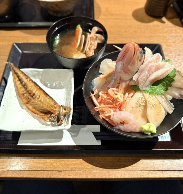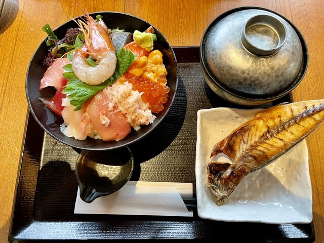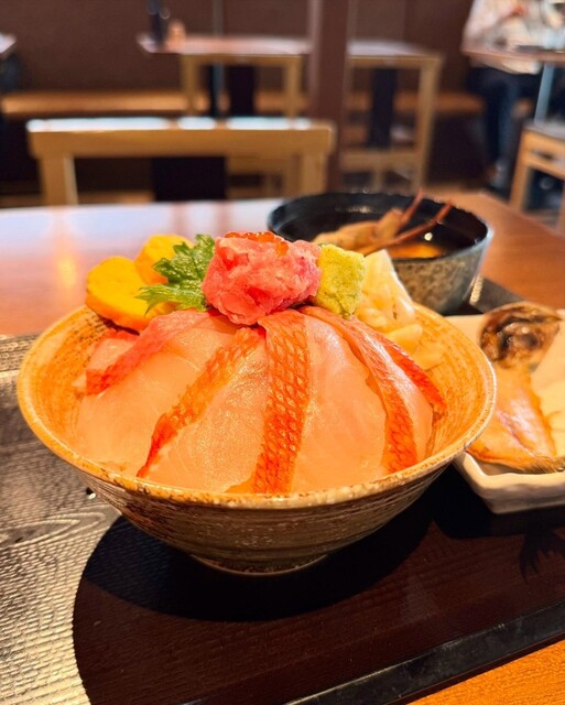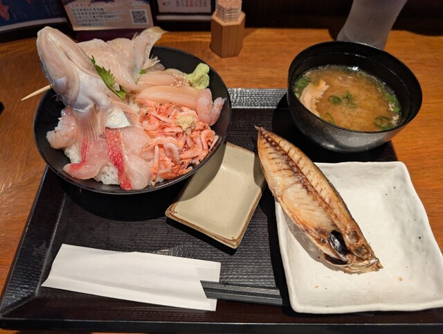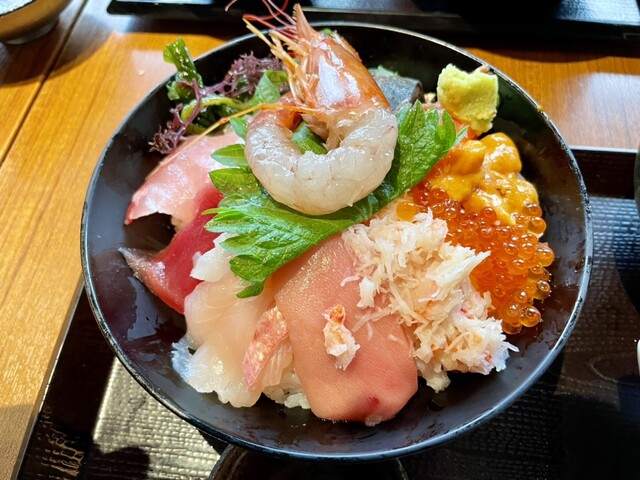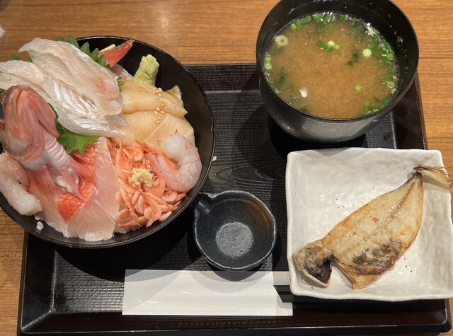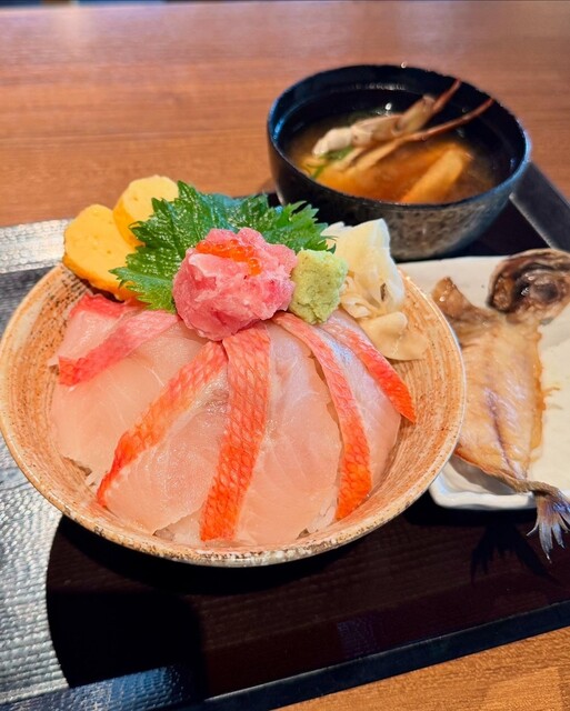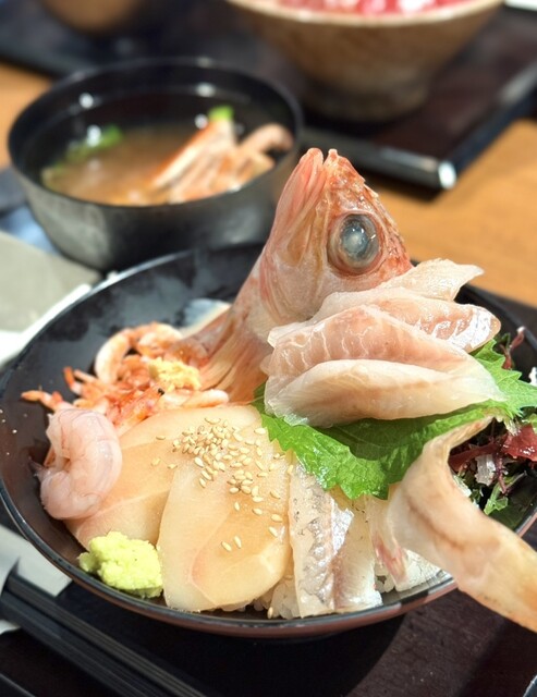 沼津港近辺は海鮮系のお店がたくさんあります。 そんな中でこのお店にて気になるメニューがあったため、狙いを定めて来店。 この店は海鮮丼がメインですが、特に注目なのは深海丼です。 また、丼ものになぜか干物がついてきて、その点もポイント高いですね。 おすすめはほかにもあり、それが干物となめろう... 詳細を見る