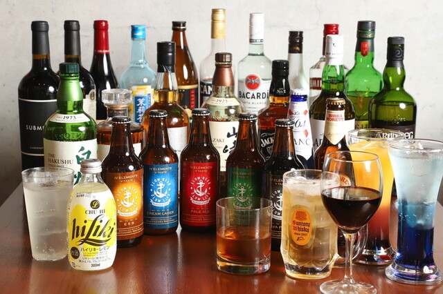 いろいろな国のビール・ウィスキーから、ハイボール・サワー・ワイン・カクテルなど200種類を超えるドリンクの数々、もちろんノンアルコールも豊富に取り揃えております。