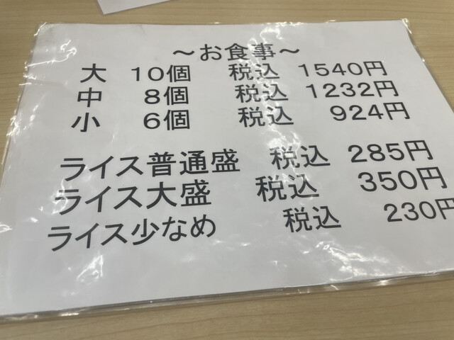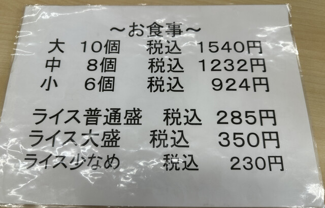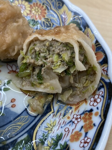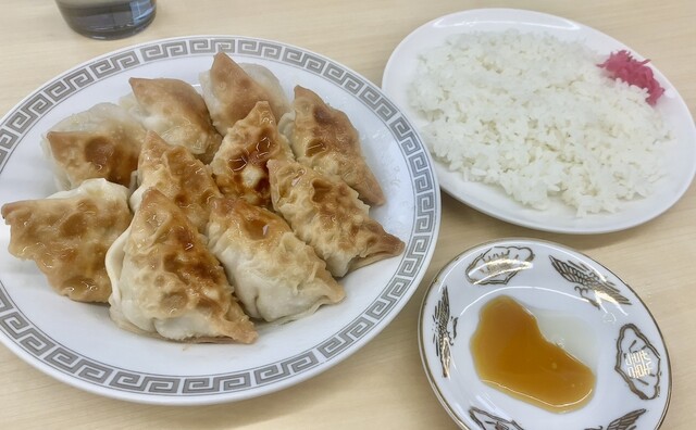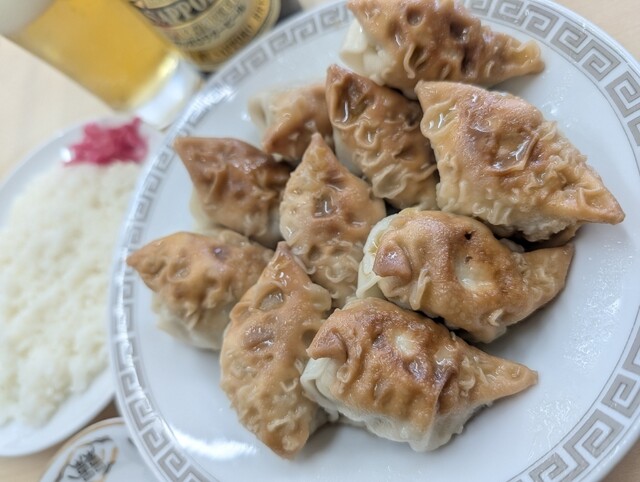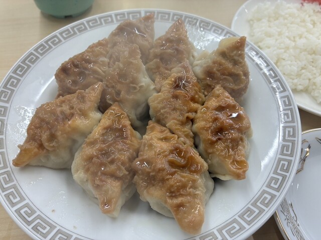 焼いた後にゆでるという独自の調理法の餃子を食べに沼津へ。餃子は「大(10個)」(1540円)と、ライス普通盛り(285円)で。餃子は、もちもちとした食感で、具材は豚肉とキャベツがメイン。ニンニクやニラ...