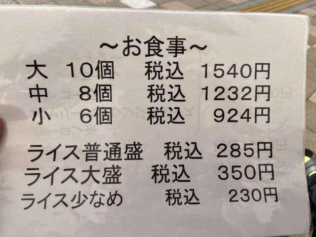 肉肉しい感じで確かに旨いけど、丸くて見た目よりボリューミーだから6個の小924¥で十分だけど、それでも良い値段。さすがに遠いってのがなくてももっとコスパ...