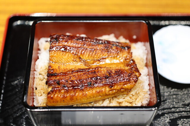 やってきたうな重上のフタを開けると、たっぷりだったろーご飯にふっくら分厚い身のうなぎがこんにちは...
