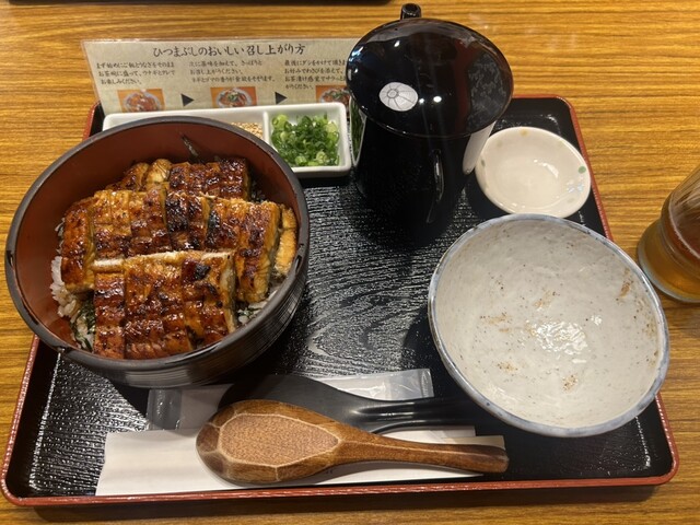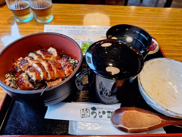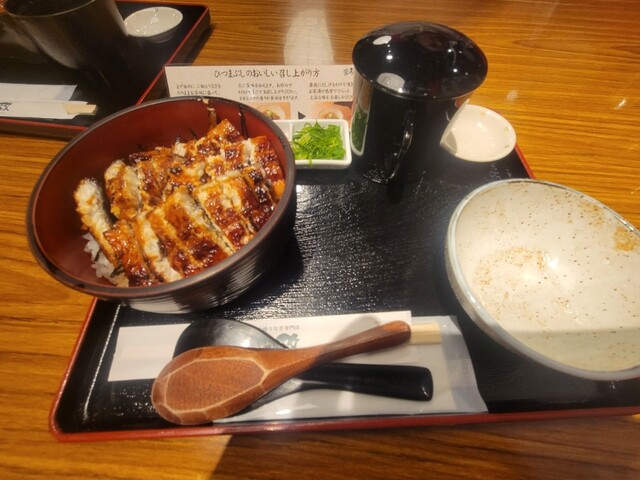私はうな重の上、連れはひつまぶしの並。