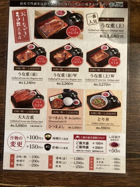 三島店は2022年6月オープンなので店舗は新しく清潔感があり、お手頃な価格で気軽に入れる鰻屋さんです。