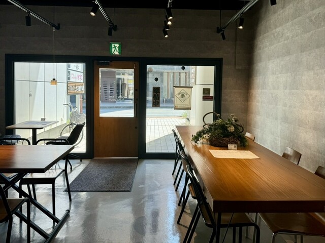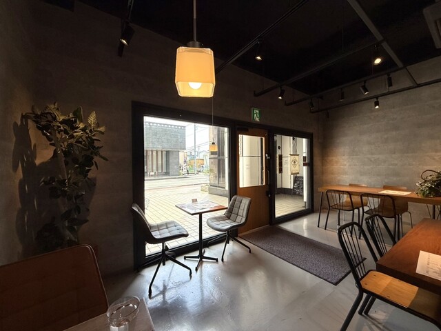 三島広小路エリアにひっそりと佇むカフェ。道沿いですが、若干奥まっており、黒を基調とした外観のためわかりにくい。入ってみると、明るく奥行きある広々としたカフェでした。