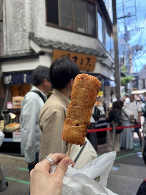 熱海駅から徒歩2分、平和通り商店街で揚げたての磯揚げが楽しめる 「まる天 熱海店」 に訪問おんふか テイクアウト専門で回転も早く、手渡し直後の熱々を“食べ歩き”できるのが最高✨ ... 詳細を見る