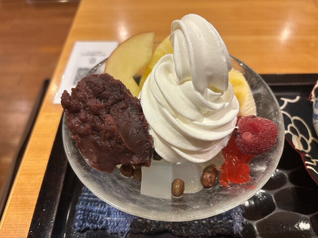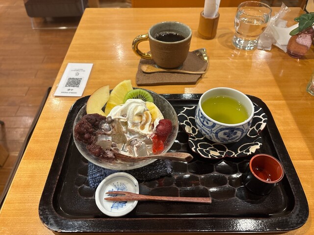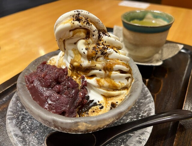 平日木曜日の15時頃に来店しましたが、席は比較的埋まっていて、しばらくすると満席で外にも2組待っている状態でした。 甘いものが食べたかったので、コーヒークリームぜんざいと+4... 詳細を見る