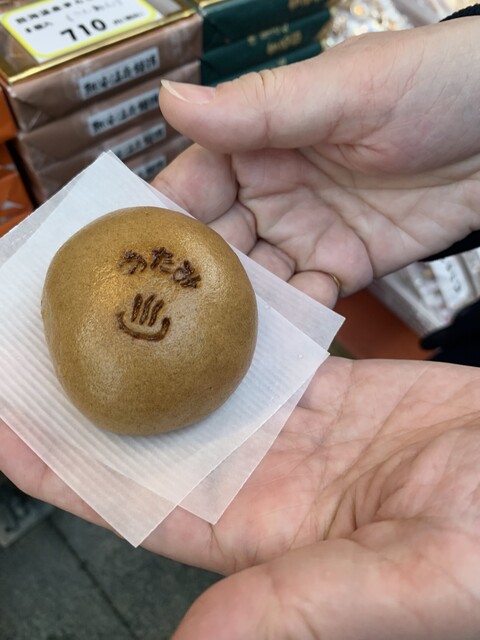 優しそうなおじさんの店員さんに、『熱いですよぉ』と、教えてもらいながら、受け取ったお饅頭は本当に熱々。