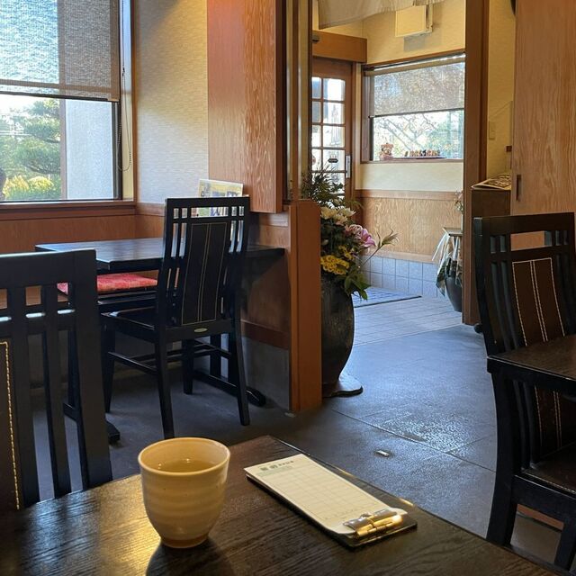 国道沿いの駐車場から一段高いところに白壁の和風二階家のお店があります。1月の3連休の中日、11時半という時間でしたがすんなりと駐車、入店できました。店内はテーブル席、カウン...
