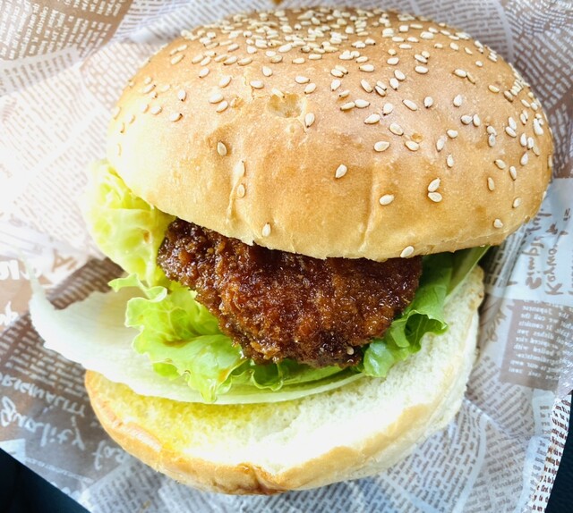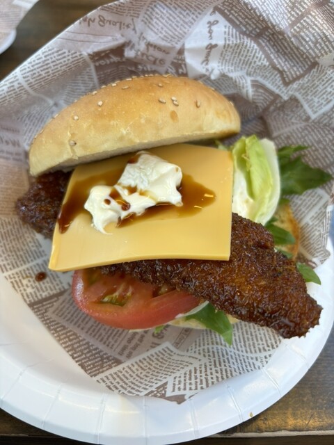 金目鯛の下田バーガーは、金目鯛のフライとチーズがベストマッチで美味。