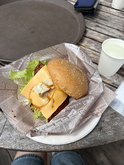 下田バーガー(金目鯛フライ、スライスチェダーチーズ、カマンベールチーズ、トマト、レタス)
