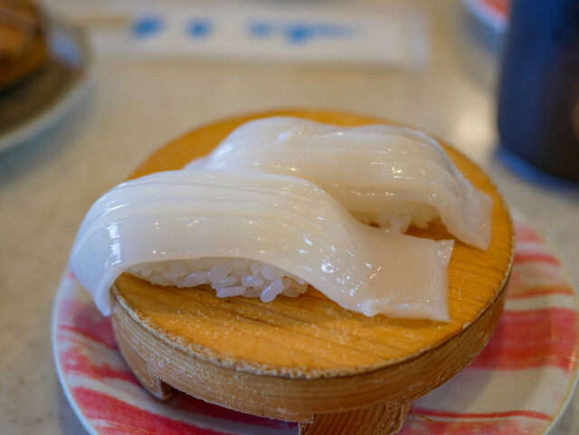伊東にある回転寿司屋。 大通りに面しているので すぐにわかる。 駐車場はそんなに広くはない。 入店すると テーブル席が数席と カウンター席がある。 寿司を握る職人が中央に。 2~3人で分担して握っている。 メニューは 一皿105円~630円まで 段階的に設定されている。 デザートや飲み物もある。 さてこの寿司屋。 回転寿司ではあるが か○ぱ寿司やスシ○ーな... 詳細を見る
