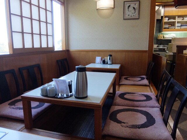 64席 (座敷は堀炬燵4卓、その他は大小テーブル4卓、ボックス席4、座敷とテーブルを連結板追加で最大80席) |