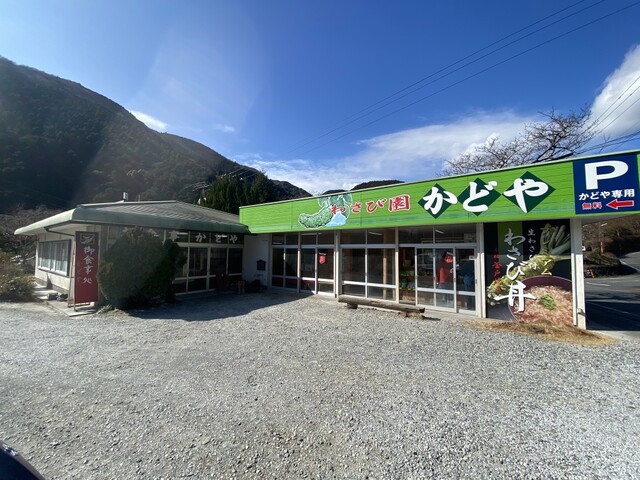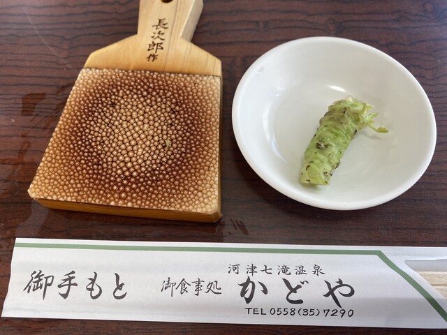 河津七滝に行った帰りに生わさびが食べられるかどやさんを訪れました。七滝は観光客もまばらで空いていたのにこちらは駐車場も満車。お店に入ると待っている人が沢山いてびっくり。