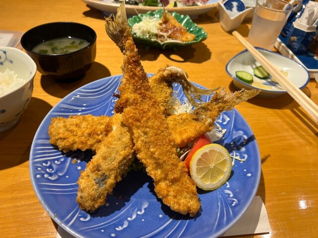 伊東駅から徒歩10分、 伊東オレンジビーチが目の前に広がる 開福丸さんに伺いました。 本日のランチセットと 生桜えびをいただきました。 ランチの内容は 鯵のたたきとキスフライ2尾のセットです。 鯵のたたきは 鯵を薄くスライスしたお刺身で、 新鮮でとても美味しいです。 ... 詳細を見る