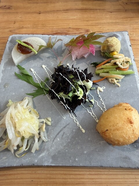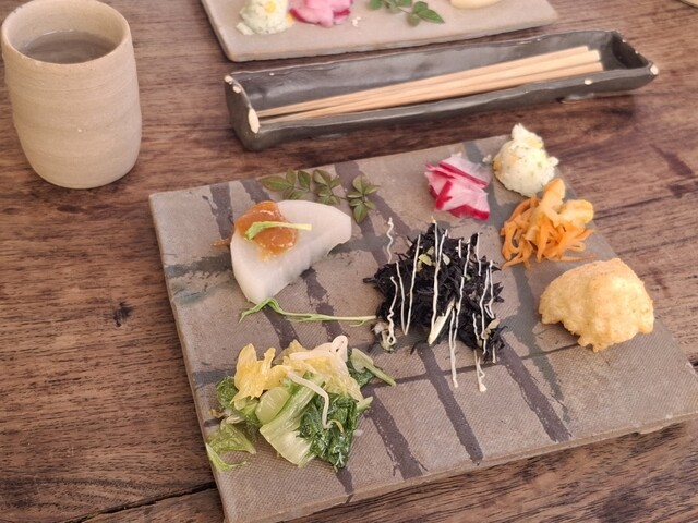 前菜プレートとデザートとお抹茶付き!