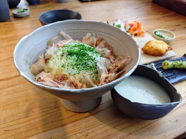 そこに『自然薯のとろろ』をかける。わさび、鰹節、とろろ、出汁醤油、まずいわけがないです。かきこみたくなる旨さの一杯です。