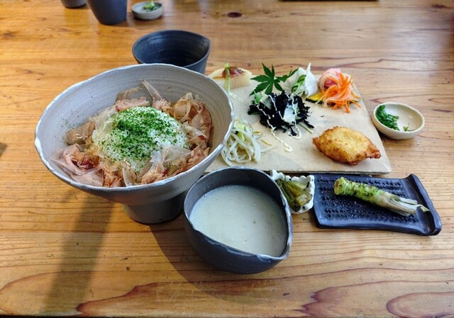 『伊豆わさび麦とろ丼(1760円税込)』『前菜5種プレート』
