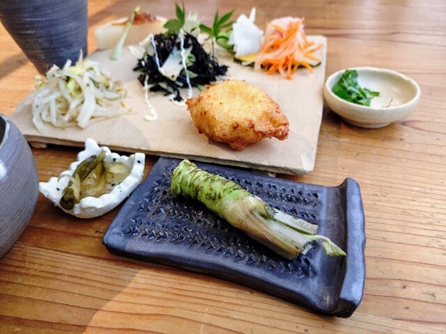 ◇メインの『わさび、麦とろ』は、生ワサビを自分でする楽しさ。これが本当に香りがよくて、少しツーンとはきますが、うまい辛さです✨