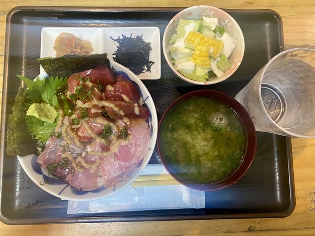 漬け丼→ゴマダレが斬新で、意外にもアリで驚いた。美味しい。
