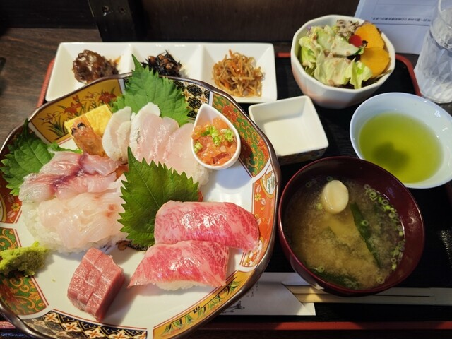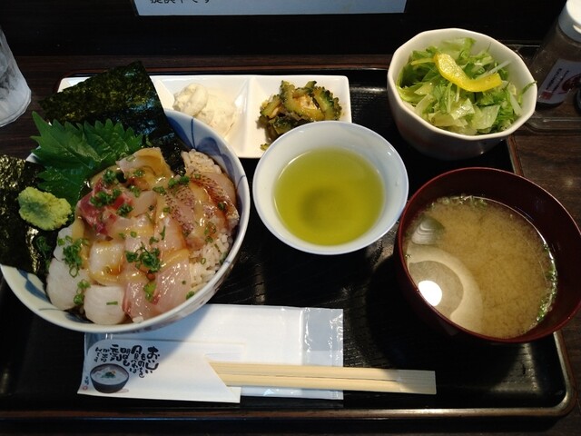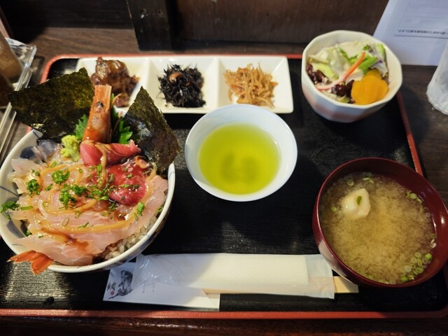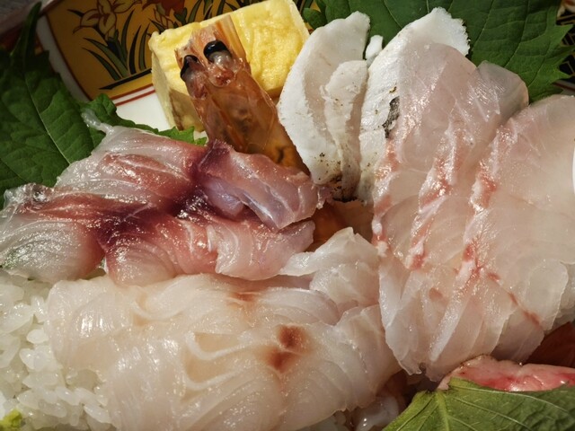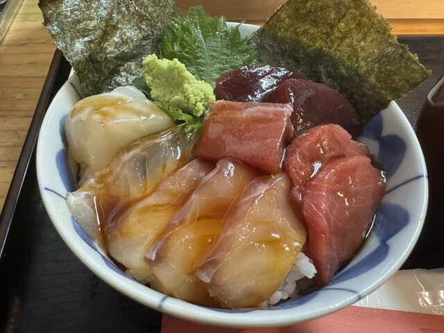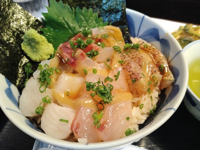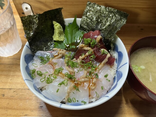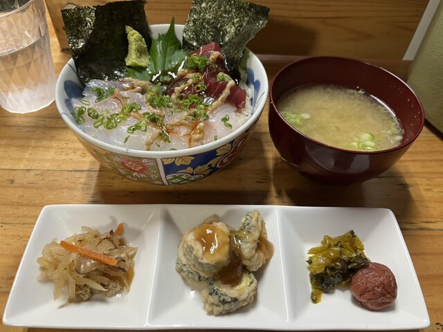 漬け丼¥1500−、昼刺し定食¥1500−、アジフライ3枚¥800−【税込】 伊東の駅前から平行して店舗が並ぶ「湯の花道り商店街」と「駅前仲丸通り商店街」。その中間に位置... 詳細を見る
