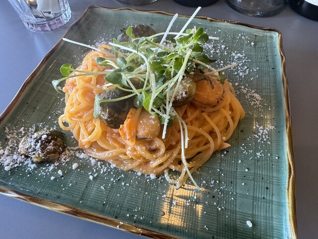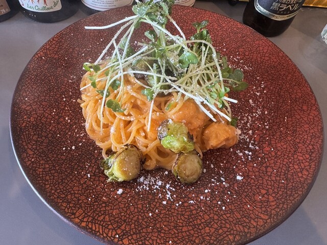 帆立とウニクリーム 1500円 瓶ビール 小瓶 600円 秋鮭とナスのクリームソース 1300円 サラダ、ドリンク付き 瓶ビール 黒ラベル小瓶 600円 まずはサラ... 詳細を見る
