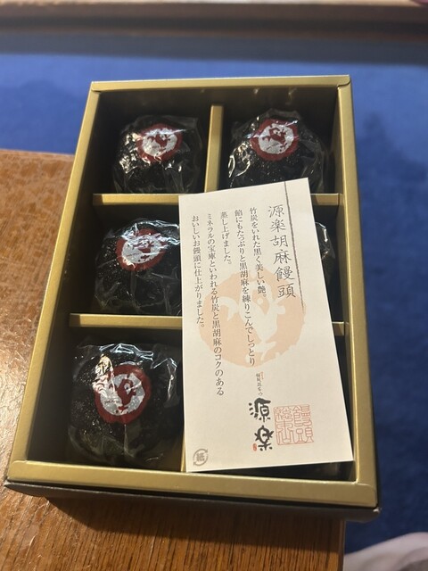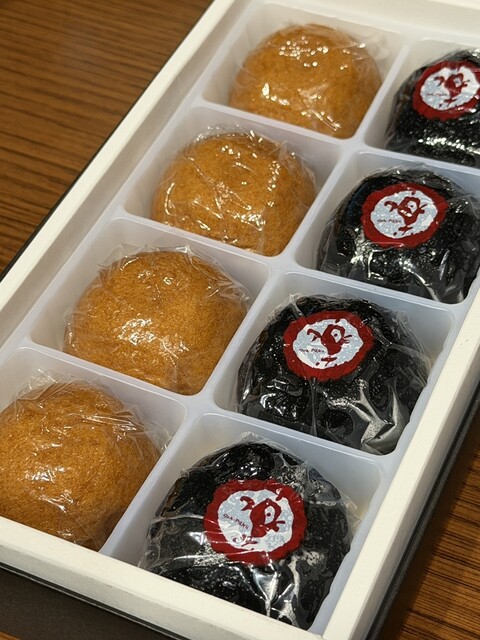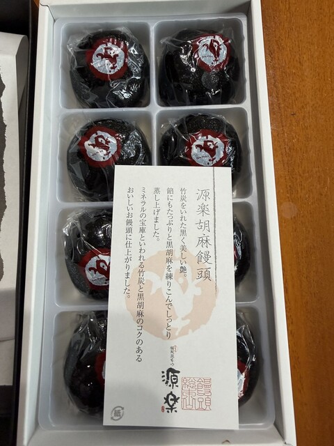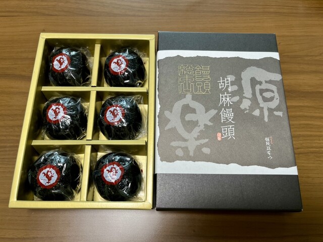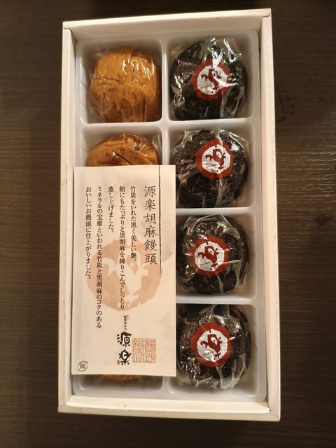 今回は、源楽胡麻饅頭と黒糖饅頭の詰め合わせを購入。各4個ずつのセットで持ち帰った。