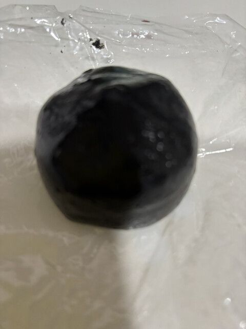 黒米を生地に使ったお餅はとっても柔らかくて、中の粒あんは甘さも控えめです。