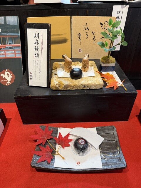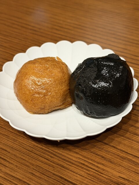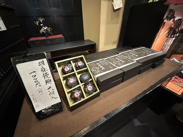 開店時間から少し経ったタイミングで先客がおらずでしたが、店内に入るや否や、黒胡麻饅頭の試食を勧められました。