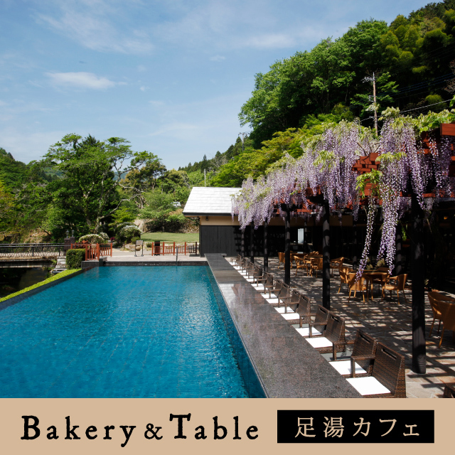 足湯を愉しめるテラスを併設したベーカリー&カフェ。