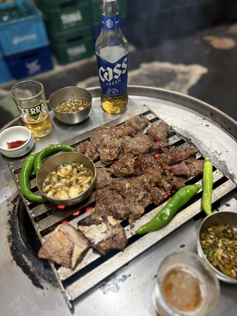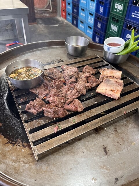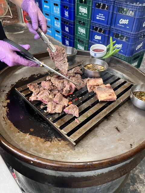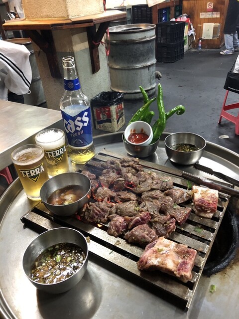 明洞の裏通りにあるドラム缶で立ち食いする焼肉屋さん。よくTVやYouTubeで紹介されてます。骨付きカルビを店の人が切ってくれ、焼きながら更に自分で食べやすく切ります。味がしっかり... 詳細を見る