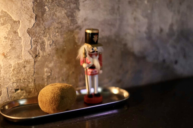 1階のカウンターも落ち着いた雰囲気で素敵ですが、今回は2階のソファー席に案内していただきました。私達のテーブルはキウイ。店内にある公衆電話からテーブル名を告げオーダーするスタイル。