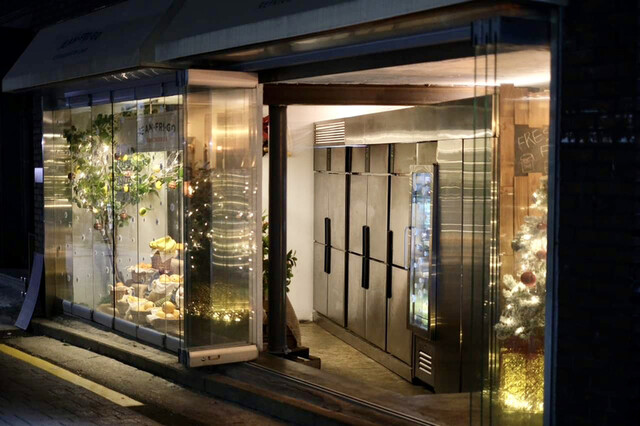 東大門近くの住宅街にひっそりとオープンするリノベーションバー「JEAN FRI GO(장프리고)」にお邪魔してきました。外観は果物屋さんなのですが、奧の冷蔵庫の扉がお店への入り口になっています。