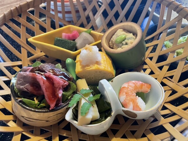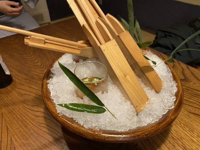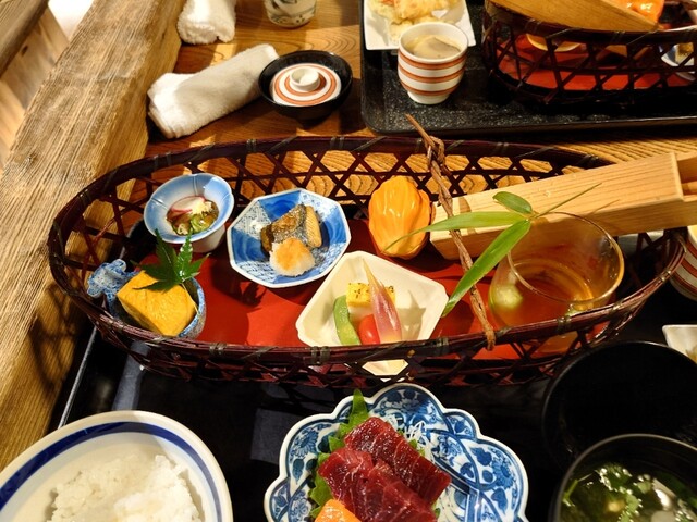 ホタルイカ 筍 アブラコシ等の山菜天ぷら 立夏を過ぎて春から夏へと移り変わる季節を感じる料理の品々を 栃木は勿論日本各地の代表的な日本酒と伴に 部屋の真ん中の大きな生け簀を眺めながら楽しい一時を過ごす...