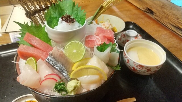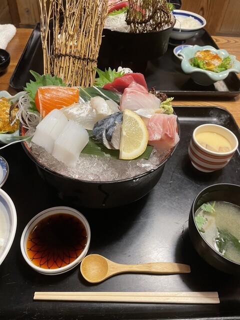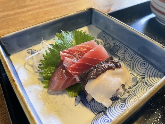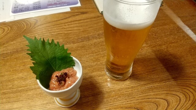 ・お酒を飲みたかったので、ランチのお刺身定食のお米を抜きにして生ビールと日本酒、それから鯛の塩辛をいただきました。