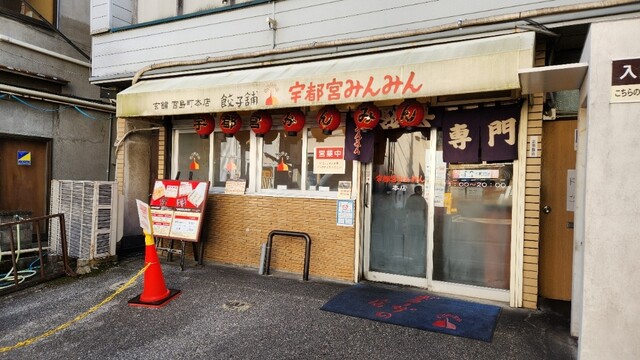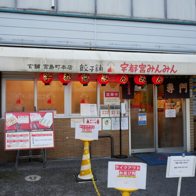 JR宇都宮駅の西口を出て 駅前の大通りを暫く西に進み りそな銀行のある大通り1丁目の交差点を右折して 最初の信号を左折 宮島町通りに入り 少し進んだ左手にある 1958年(昭和33年)創業の「宇都宮みんみん 本店」