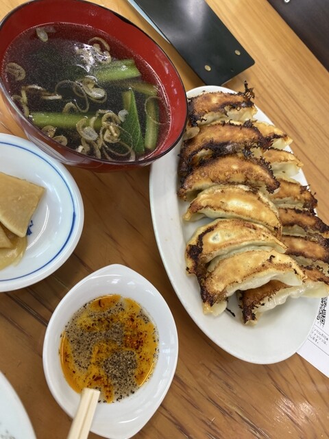 宇都宮ラスト、ランチ。上位の100名店に12時前、駐車場余裕。ちょうど満席、名前を書いてしばし待機。ほどなく呼ばれる。個室っぽいテーブル。QRコードで、自分で頼む。焼き餃子ダブル。水餃子シングル。ライス普通。1,190円、大きさ分からないので、やや不安げに待つ。焼き餃子すぐ来る。はっやー。漬物と、飯。水餃子待ち切れない。餃子から、しっかりニラ、ニンニクほどよくきいて、うまっー。飯にバウンドさせる幸...