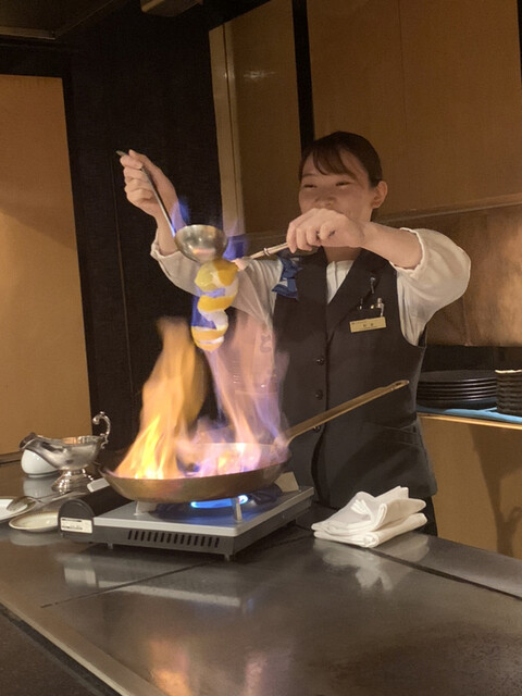 今や忘れ去られそうなフランベの妙技を、軽くこなしてくれるのに驚き!です。