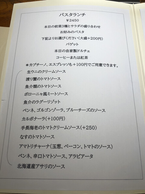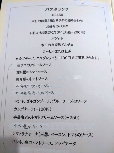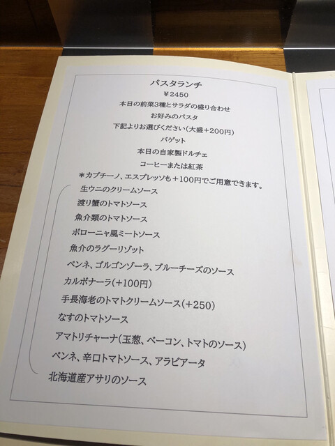パスタランチは2,450円になりました。物価高騰の中で止む無しかな。