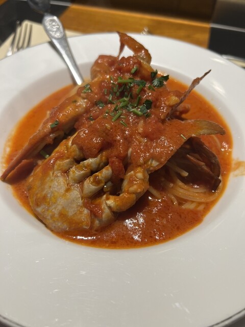 私は、手長海老のトマトクリームソースに