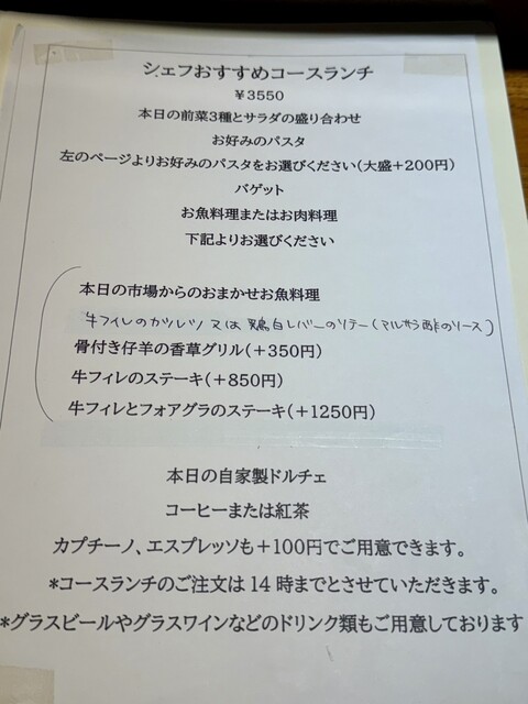 ランチはパスタランチとコースの2つ