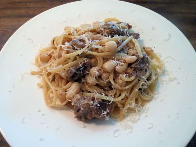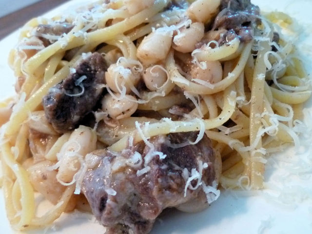 和牛ネック肉は噛む作業がいらないぐらい柔らかく、お肉自体にしっかり旨みを感じます。そしていんげん豆のとろみと、パスタソースがイイ感じに麺に絡まってきて、このコク深い味付けはお世辞抜きの美味しすぎるパスタでした。麺は強いアルデンテ調ですが、それがまたgood☆☆☆