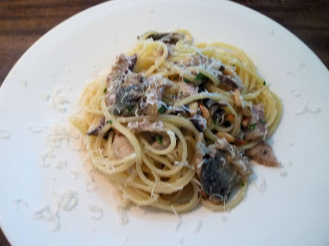 やや秋刀魚のクサミが気になったものの、青魚に合う松の実を散らし、パルミジャーノをふんだんに使ってコクをプラスするあたりは「さすが」ですね。