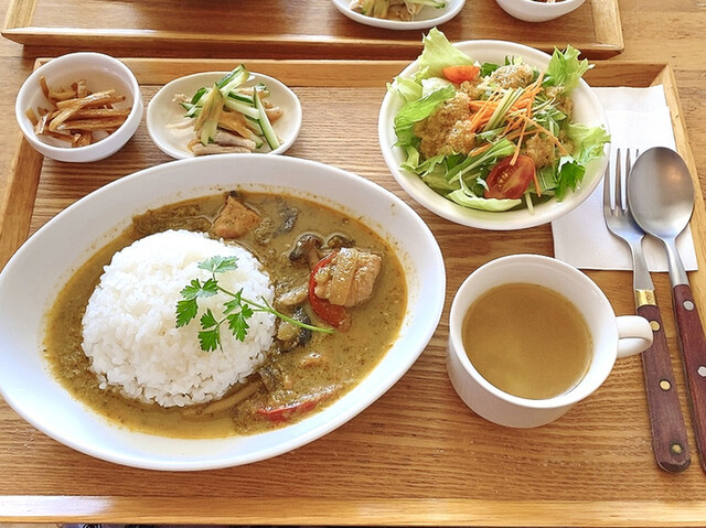 その日のメニューは3つほど黒板に書いてある中から選ぶスタイルで、グリーンカレーをチョイス。