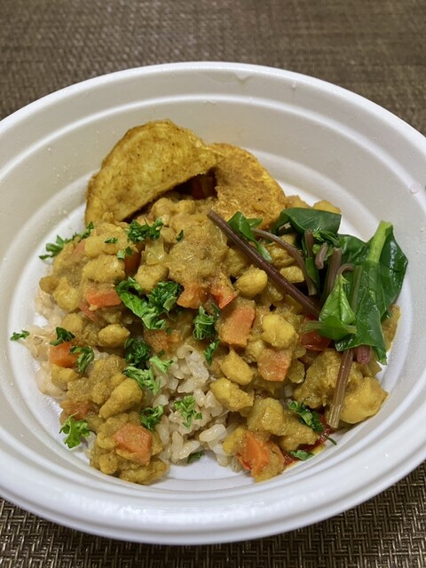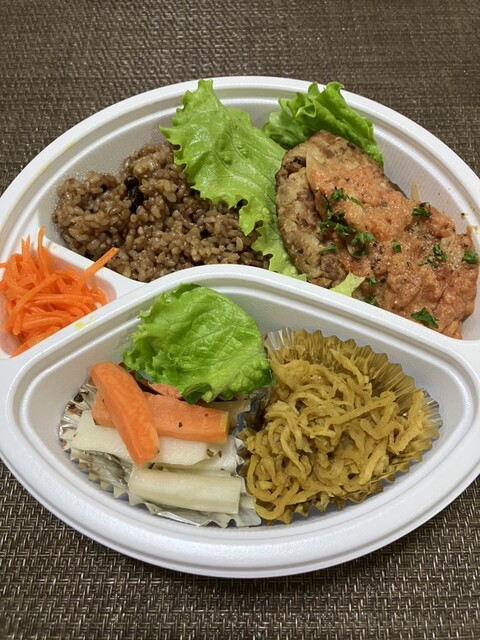 玄米ご飯と植物性タンパク質の大豆ミートを使った、極力動物性を使わないお惣菜です。オリジナル幕の内弁当「ララ弁」もご予約承り中です♪