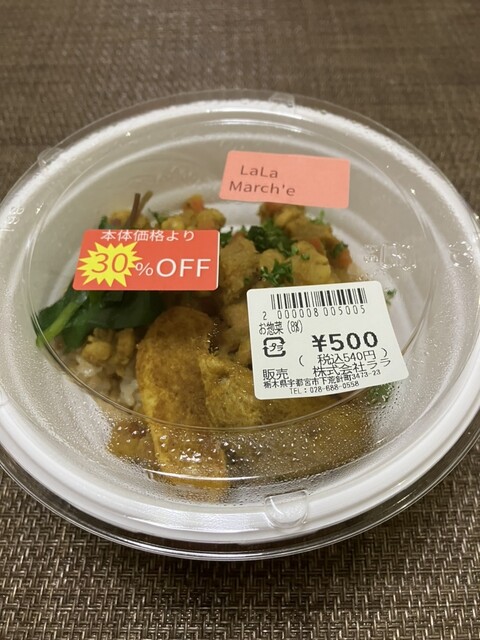 マイレビ様のレビューで気になってたお店です (*ˊᵕˋ*) < ララカフェ > 病院の帰りだったので 夕食の手抜きにお弁当を♪ 私の好みはキーマカレー... 詳細を見る