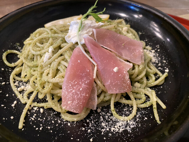 落ち着いて洒落た和カフェ。お得なランチメニューは12種で洋風が多く茶蕎麦等の和風メニューもある。バーコードを読み込んでスマホからのオーダーとなる。注文したのは"ジェノベーゼランチパ... 詳細を見る
