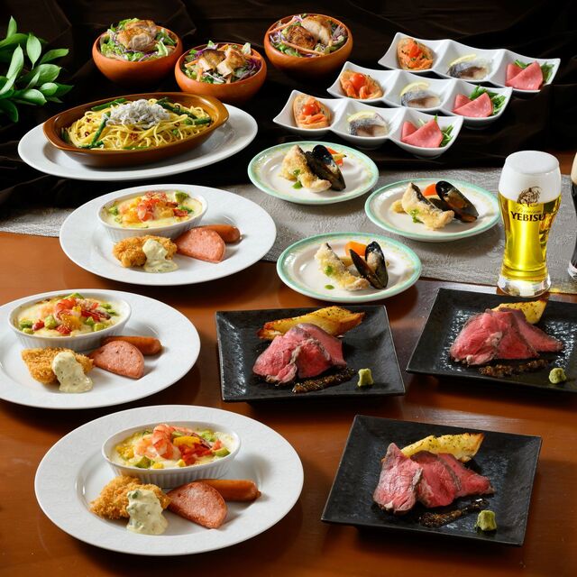 老舗ビヤホールライオン銀座七丁目店では大人気のローストビーフ。その名物メニューの味を再現。厳選した食材で調理された 伝統の味をご賞味ください。「銀座ライオン」の生ビールと 多彩なおつまみもご用意。◆4~50名様までご宴会予約も承りしております。 バンケットルーム(完全個室8名様から)も使用可能!2h飲み放題付ミート セレクションコース5,000円 2h飲み放題付プレミアムLIONコース8,000円