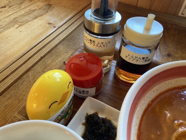 配膳時に店員さんから「このままでは「トムヤム」では無いですがまずはそのままで その後「トムヤムペースト」をレンゲ一杯程入れてどうぞ」