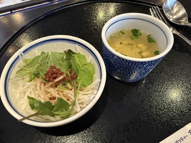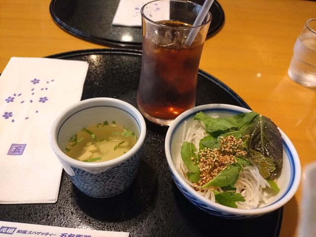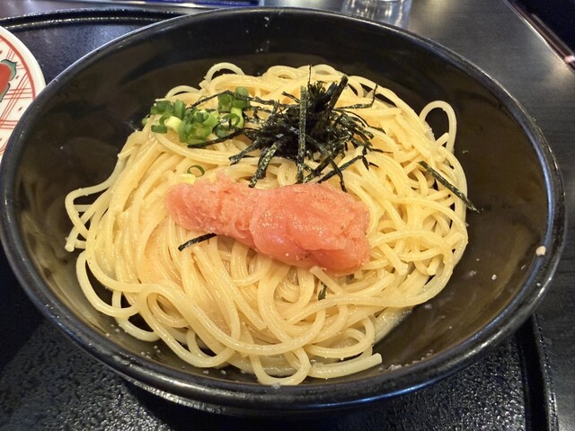 嘗て西川田店には訪れたことがあるものの当鶴田店には初訪となる。西川田店では券売機での注文形態であったが、当店では着座後に対面での直注文形式となっていて、比較的ゆっくりメニューを眺めながら注文することができる。メニューはパスタの種類が豊富で必ず好みの商品が見つかることだろう。今回はハーフ&ハーフのメニューが目に留まったのでこれを頂いてみることにした。ハーフ&ハーフは3種類。この中でAのたらこバターと...