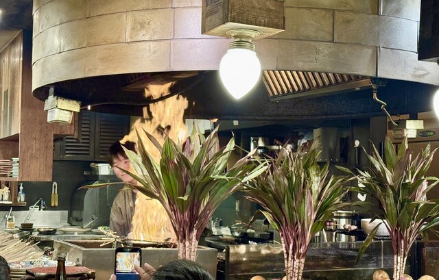 名物!!”鰹の藁焼き”は、枕崎産一本釣りの美味しい鰹を一気に炎の中で焼き上げます。